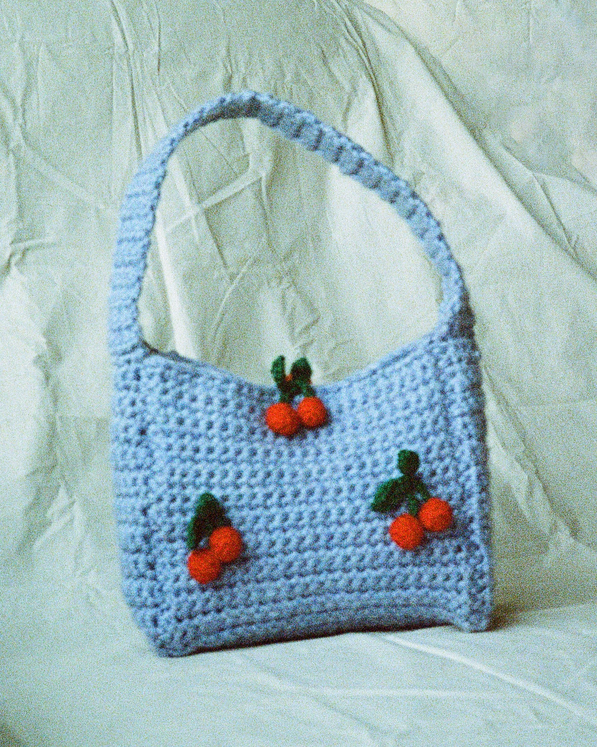 A crochet cherry shoulder bag.