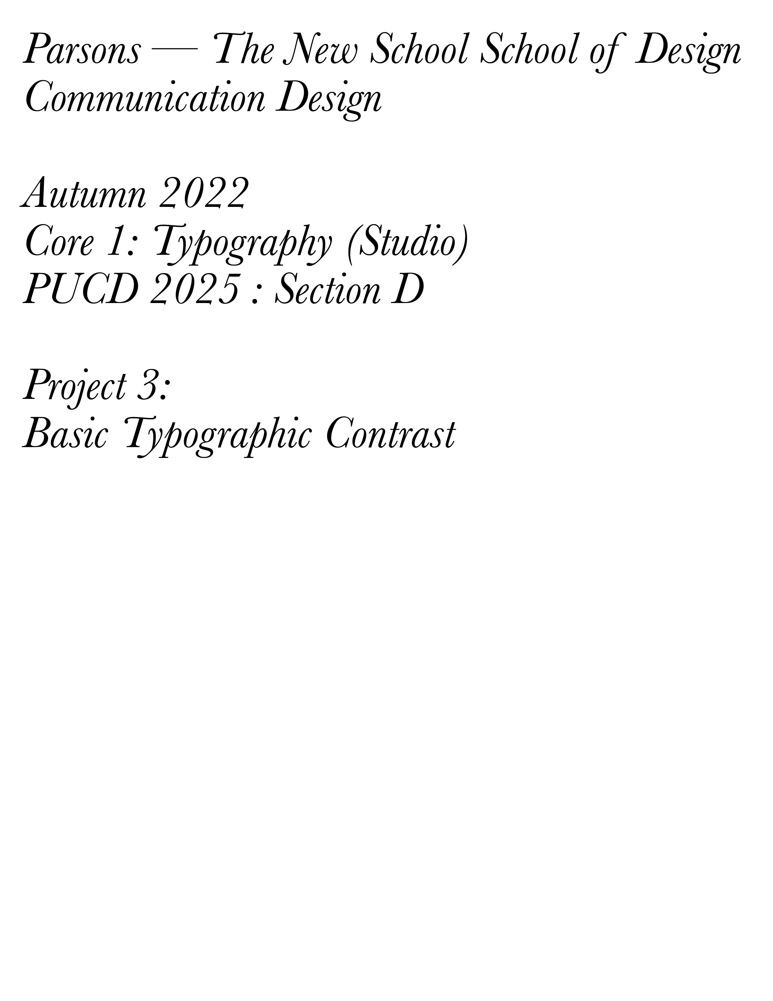 Explore the purely formal effects of typographic contrast, and compile your studies into a cohesive booklet.
