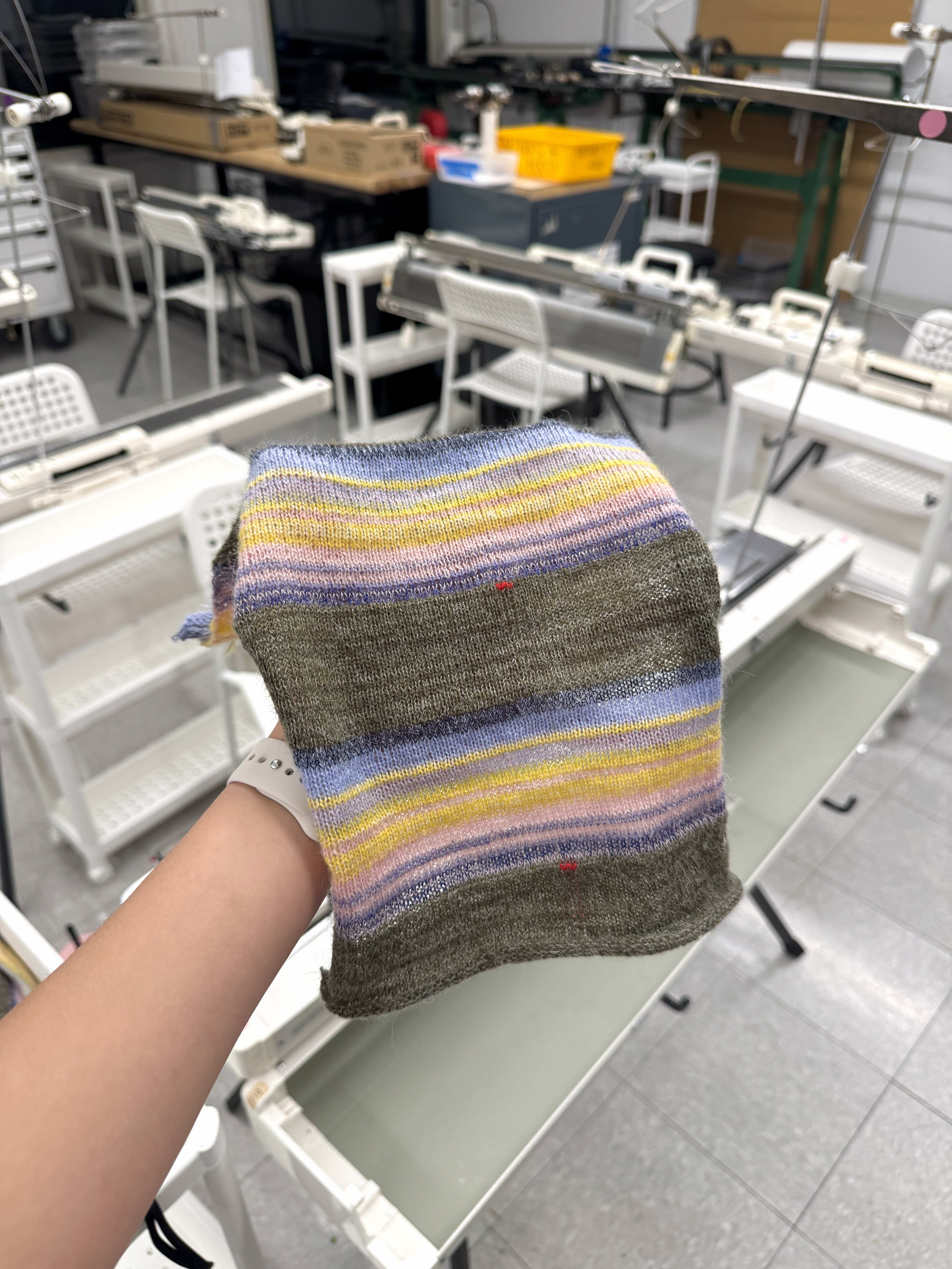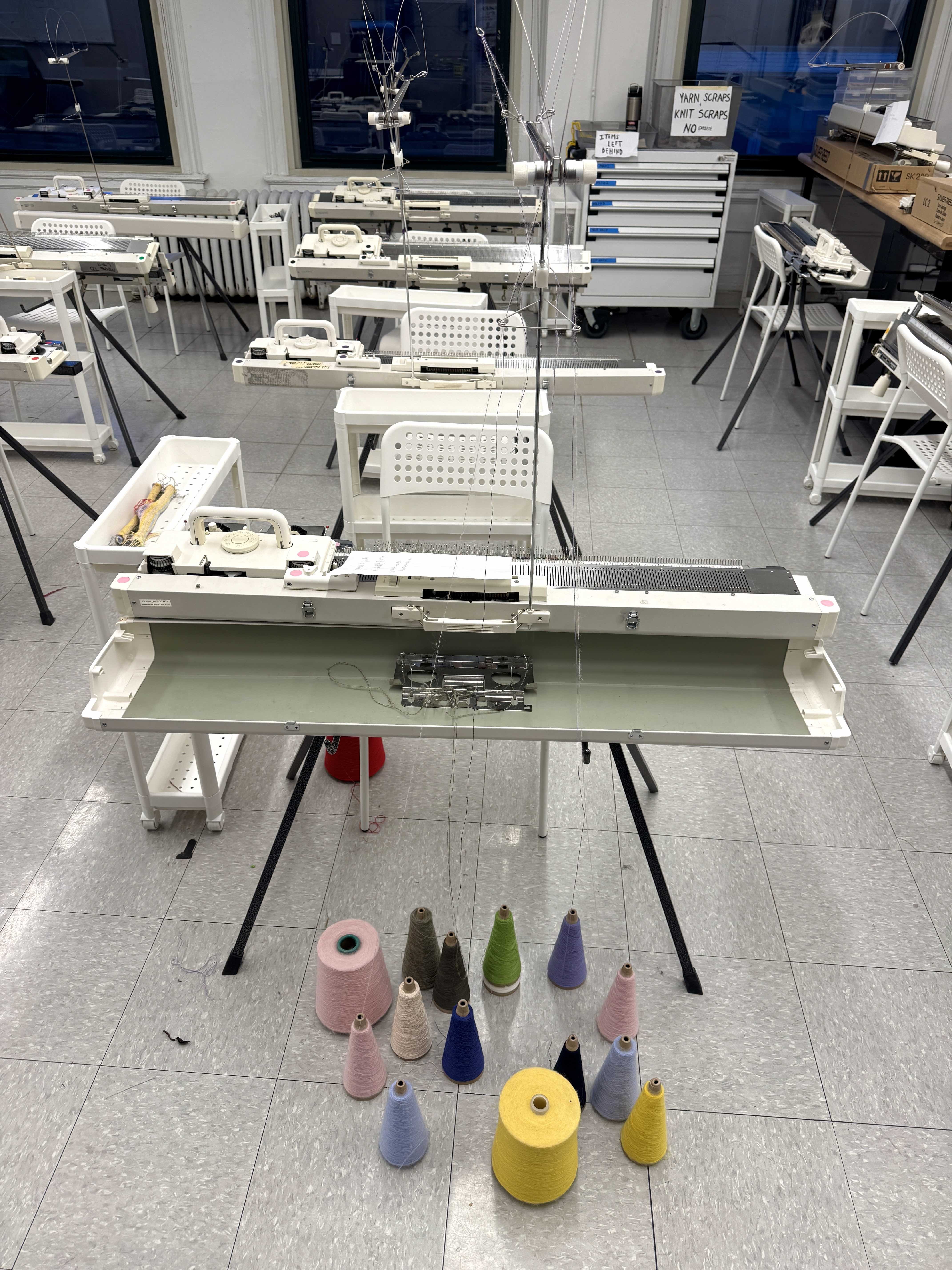 Single bed machine knitted swatch based on a photo I took in Vermont. 80 sts, 216 rows, 3 repeats total. yarn: yarn from machine knitting studio closet